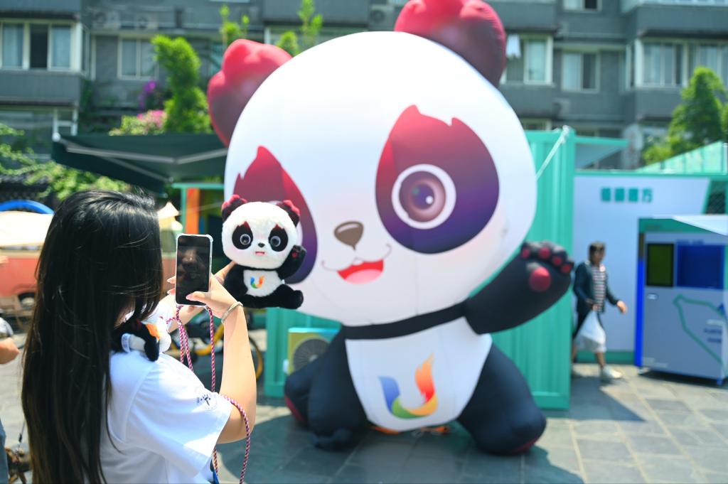 市民拿着大运会吉祥物“蓉宝”合影。成都大运会执委会供图