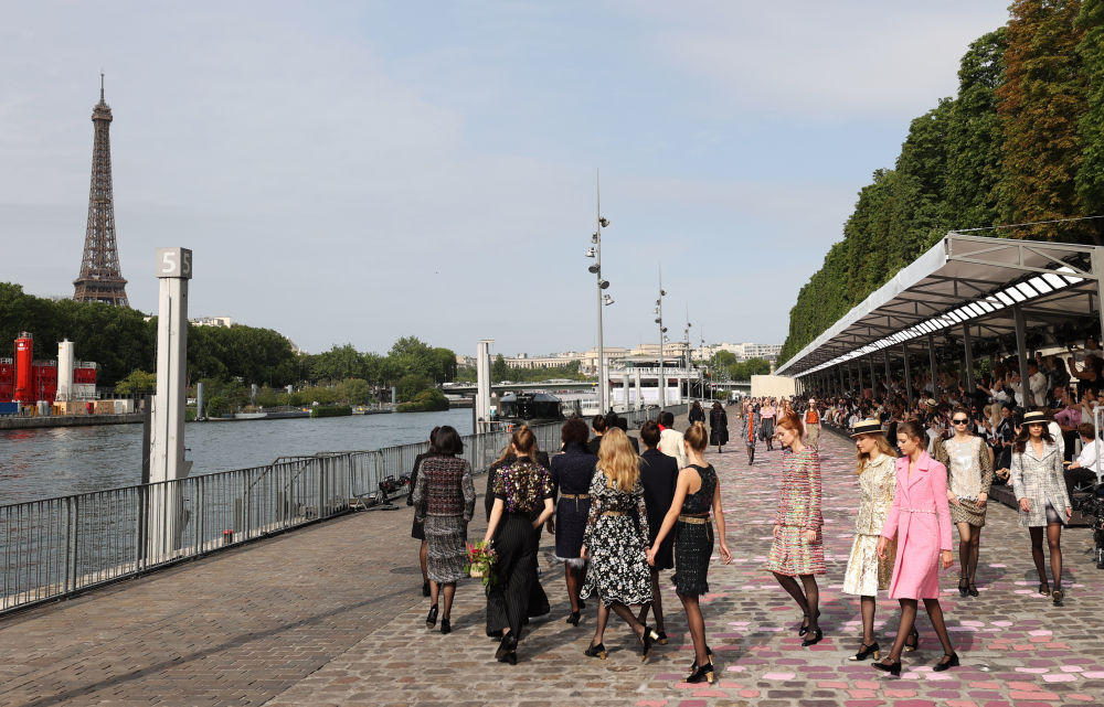 ↑法国品牌香奈儿在塞纳河畔举行2023/24秋冬高定时装秀。