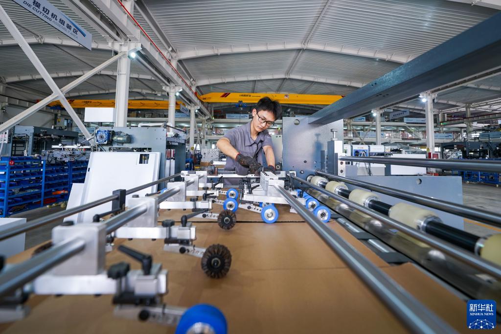 7月13日,河北省玉田县一家印刷包装机械制造企业的工人在安装产品零部件。