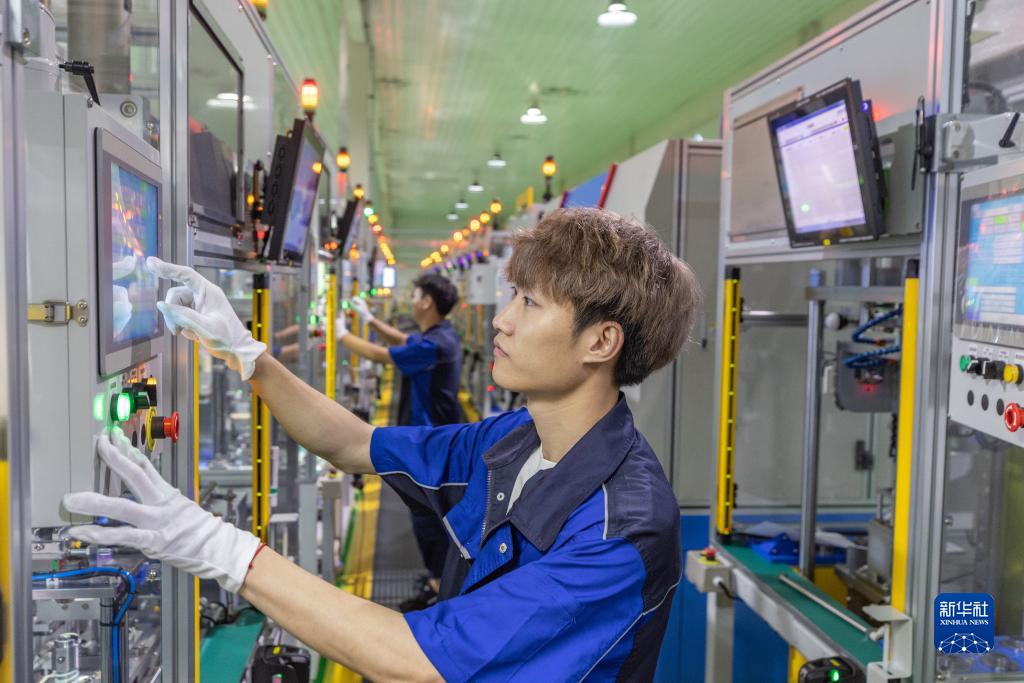 7月13日,在重庆龙润汽车转向器有限公司车间,工作人员在调试智能化生产设备。