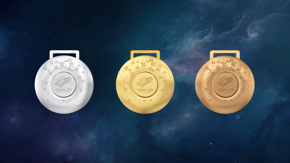 奖牌将良渚玉璧和杭州市花桂花融为一体