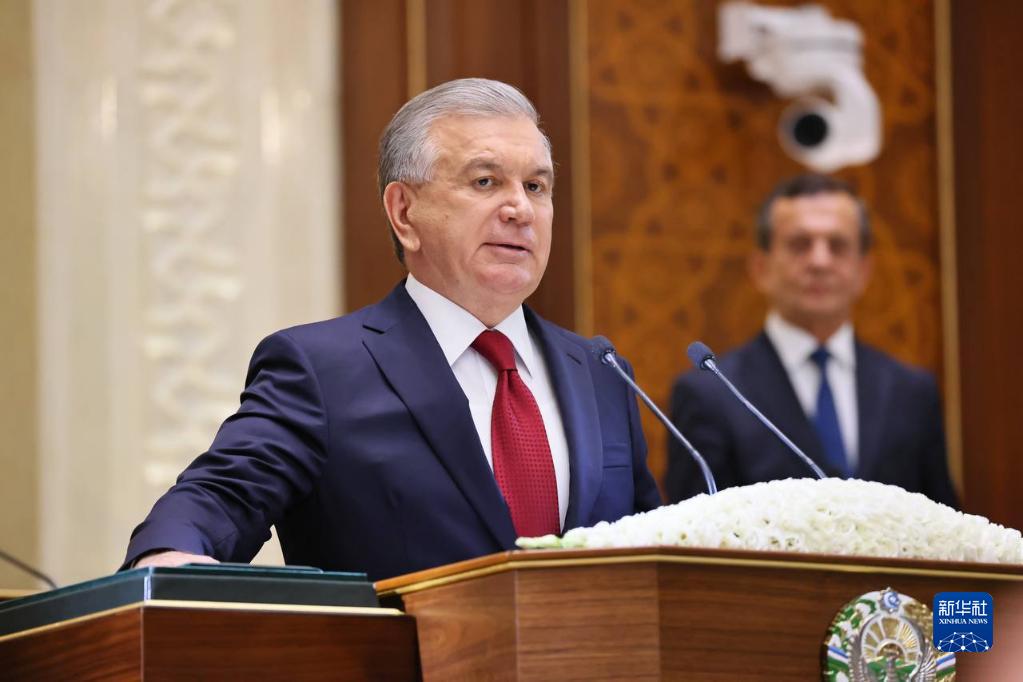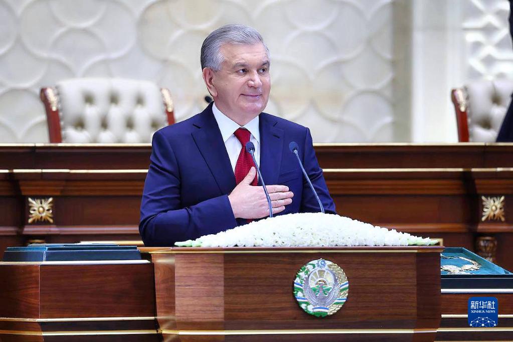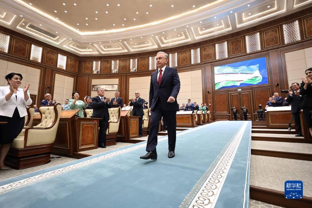 7月14日,在乌兹别克斯坦塔什干,米尔济约耶夫在乌最高会议(议会)出席就任总统仪式。新华社发(乌兹别克斯坦外交部供图)