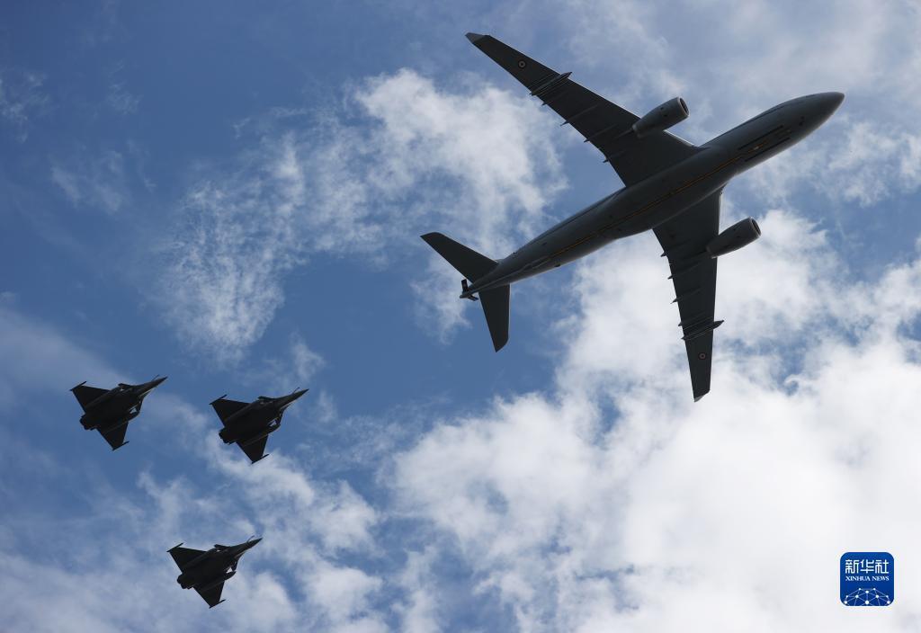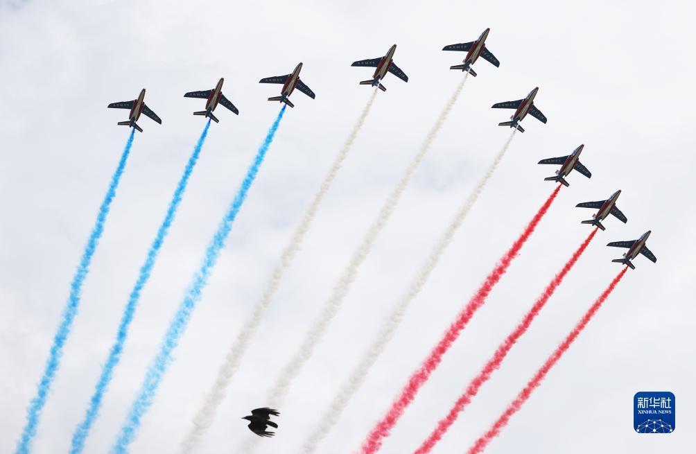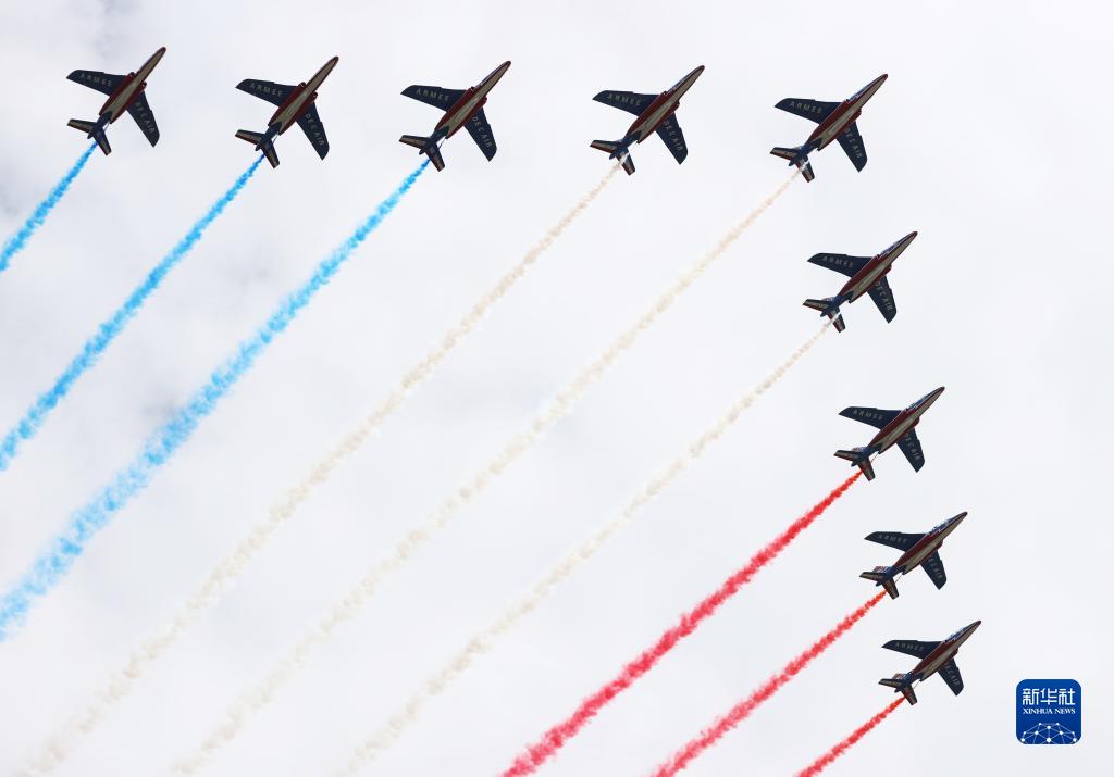 7月14日,“法兰西巡逻兵飞行表演队”参加在法国巴黎举行的国庆阅兵式。新华社记者 高静 摄