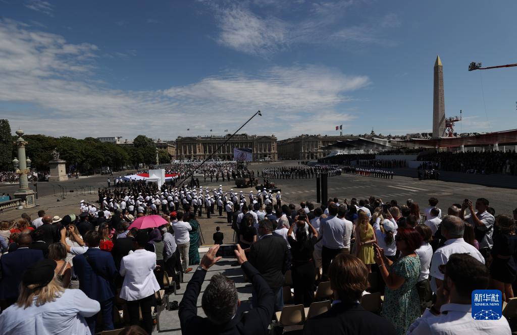 这是7月14日在法国巴黎协和广场拍摄的国庆阅兵式现场。新华社记者 高静 摄