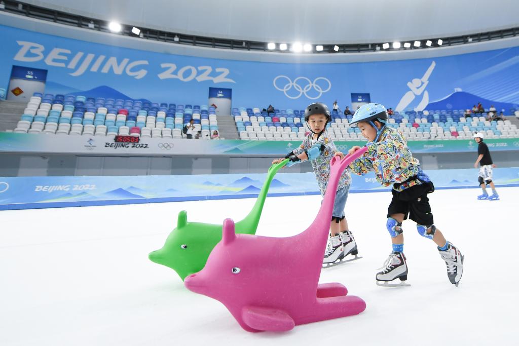 7月1日,小朋友在国家速滑馆“冰丝带”游玩。新华社记者 鞠焕宗 摄