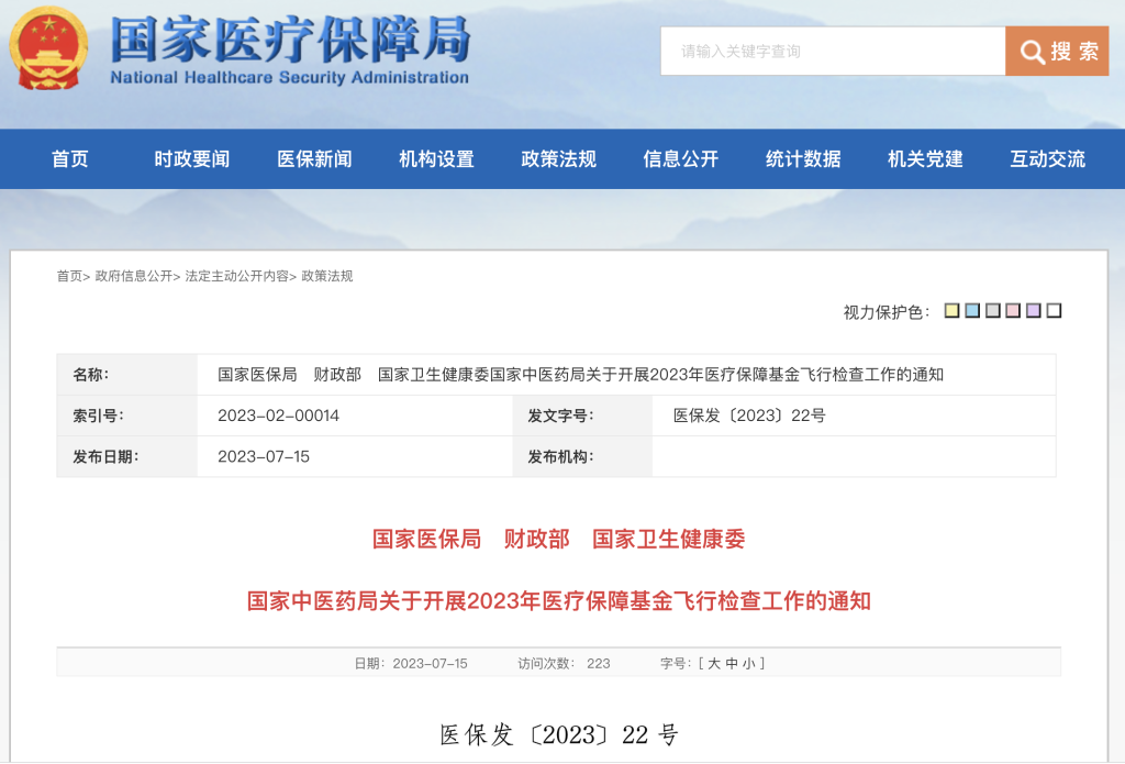 新华社北京7月15日电(记者 彭韵佳)国家医保局、财政部、国家卫生健康委、国家中医药局14日联合印发《关于开展2023年医疗保障基金飞行检查工作的通知》,将在全国范围内组织开展2023年医保基金飞行检查。
