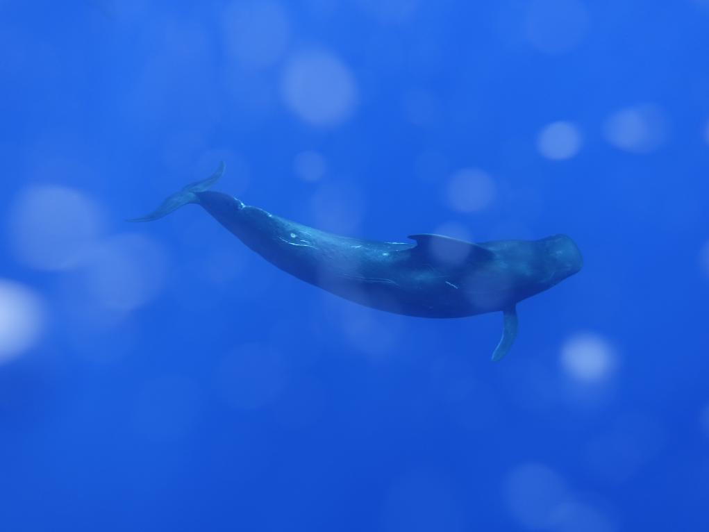 经对考察结果进行初步分析发现,本航次目击到的鲸类动物至少包含15个物种,其中深潜鲸类10种,包括抹香鲸、短肢领航鲸、瑞氏海豚、糙齿海豚、小虎鲸、小抹香鲸和侏儒抹香鲸,以及3种珍稀喙鲸。此外,本航次还记录到5种远海型海豚,包括条纹海豚、弗氏海豚、热带斑海豚、长吻飞旋海豚和瓶鼻海豚。