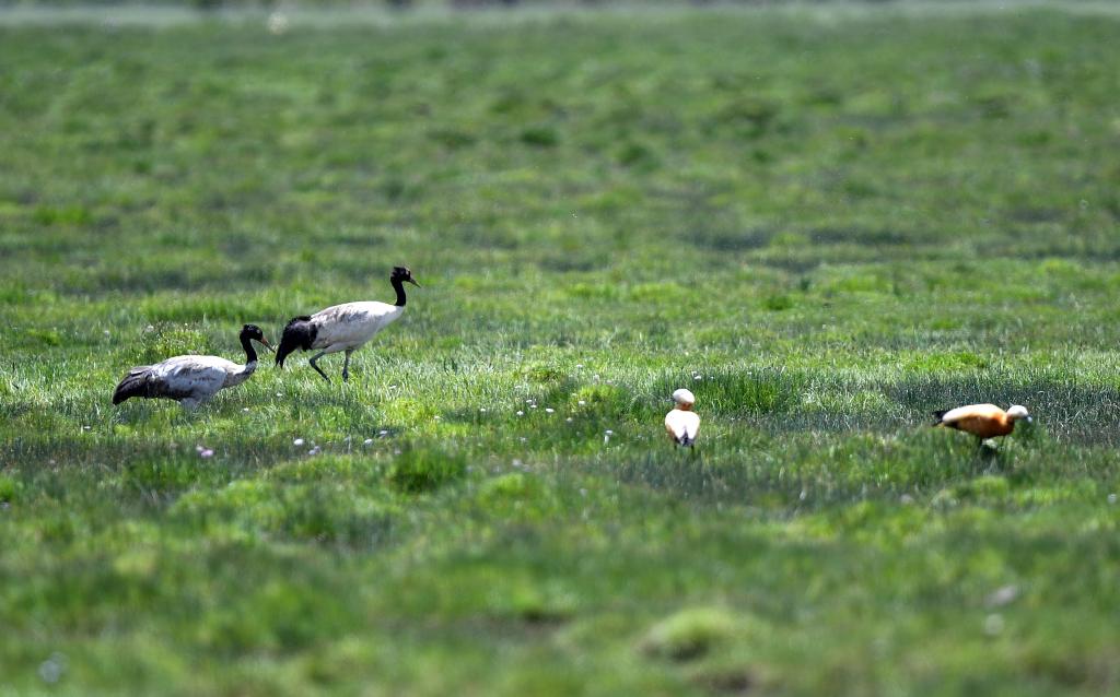 “黑颈鹤和斑头雁数量现在肉眼可见地增多了。”才仁旦周说,草长得好,湿地面积不断扩大,来到这里的鸟类才会不断增加。