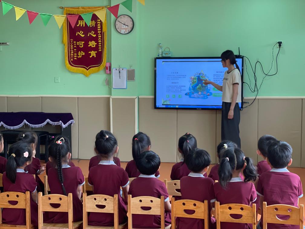 7月12日,河北邯郸馆陶县第四幼儿园中班正在上“保护地球”主题班会课。新华社记者赵鸿宇摄