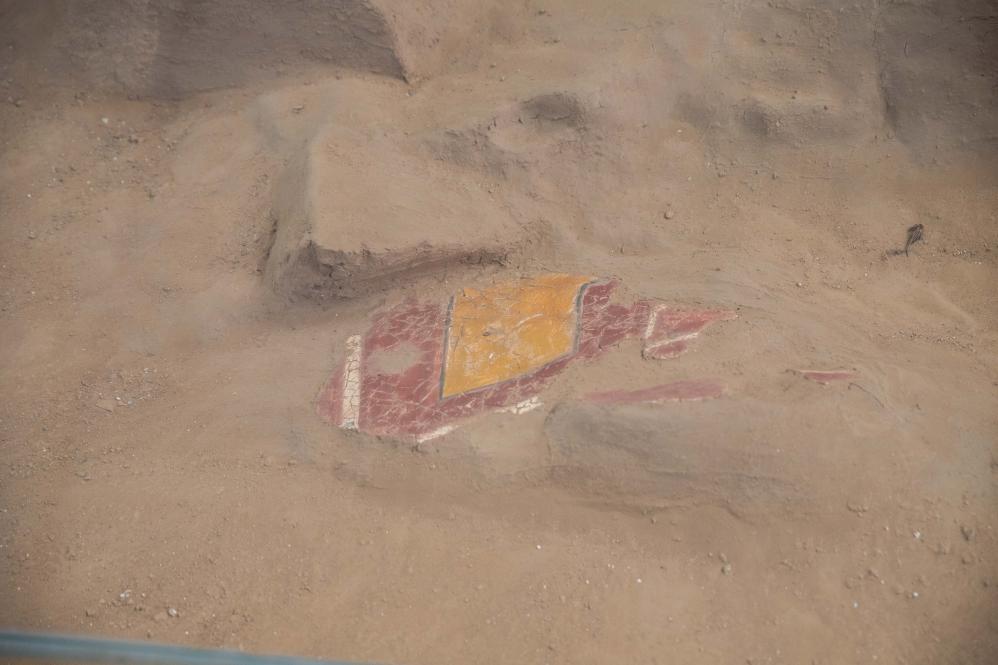 这是石峁遗址出土的壁画残片。王靖升摄 新华社发