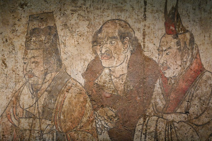 在章怀太子墓壁画《客使图》前,记者驻足良久。