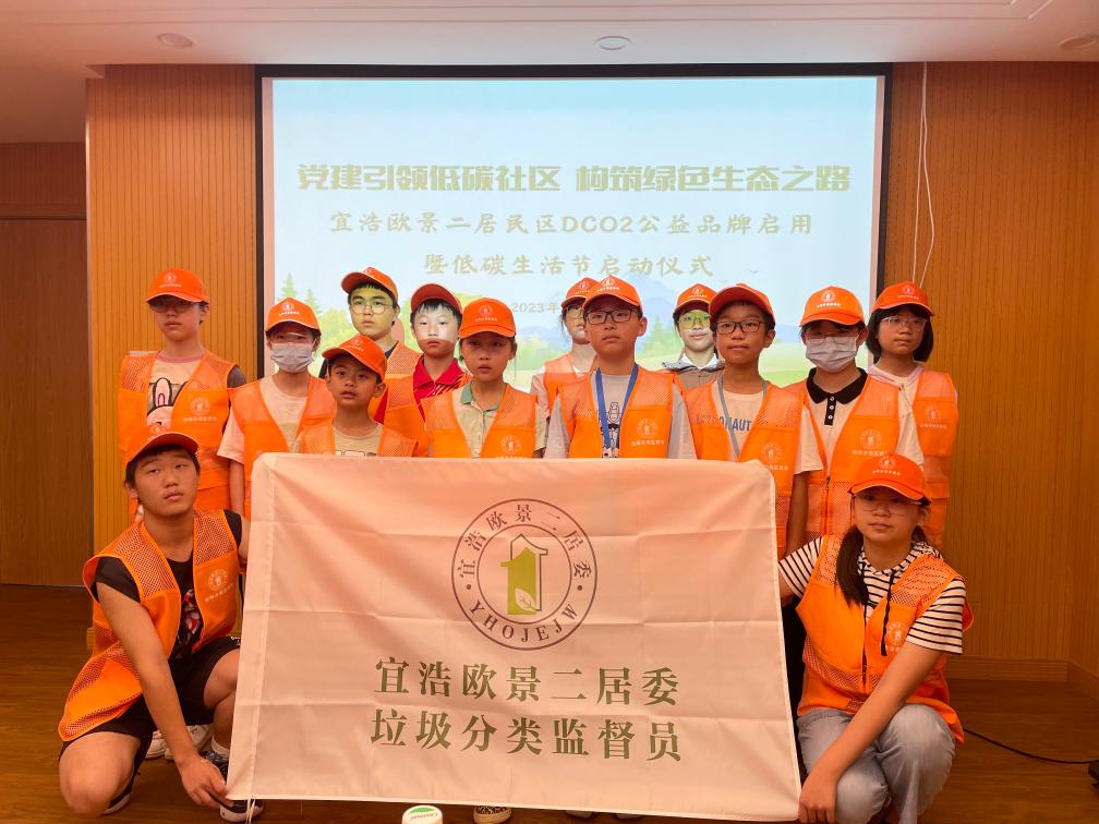 7月12日,2023年全国低碳日当天,宜浩欧景二居民区成立了一支“小小垃圾分类监督员”队伍。 (宜浩欧景二居委供图)