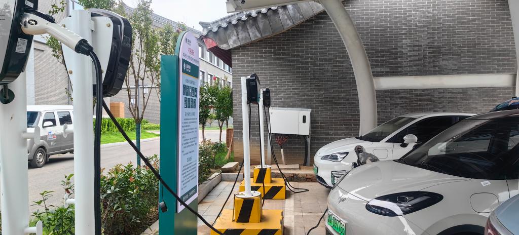 “这不是普通的雨棚,而是集‘光储充’功能于一体的充电站。雨棚上方架设115千瓦光伏面板,一旁建有100千瓦时储能设备,雨棚下安装6台充电桩,充分满足村民和游客绿色出行需求。”王济钦头头是道地说,“光储充”一体式充电站每月发电量约1.2万千瓦时,优先供充电桩和朱村景区使用。有了这个充电站,好几户村民买了新能源汽车。