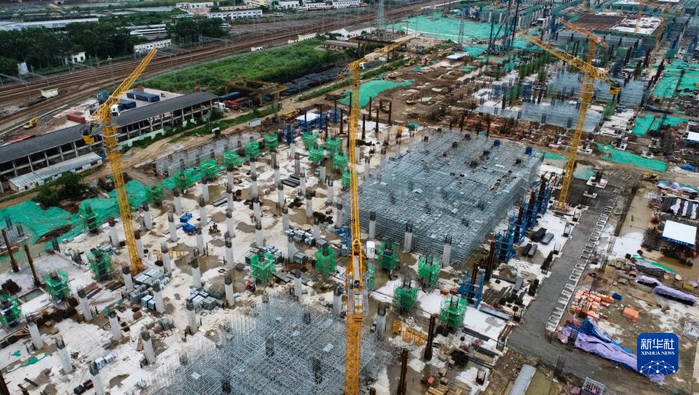 7月17日,海口新海港和南港“二线口岸”(货运)集中查验场所建设项目停止建设(无人机照片)。