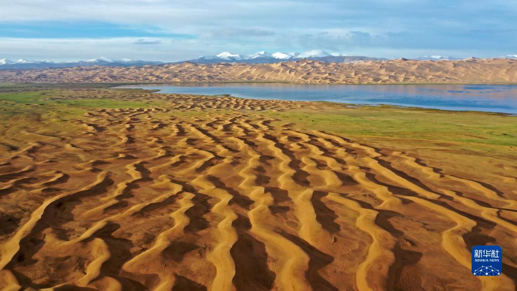 7月5日在新疆阿尔金山国家级自然保护区拍摄的小沙子湖(无人机照片)。