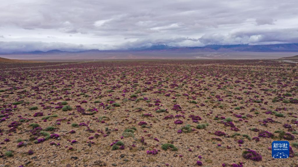 7月11日在新疆阿尔金山国家级自然保护区拍摄的刺叶柄棘豆(无人机照片)。