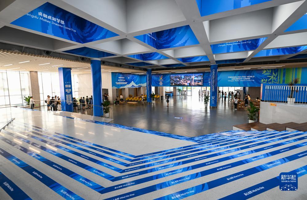 这是7月15日拍摄的大运村欢迎中心大厅。