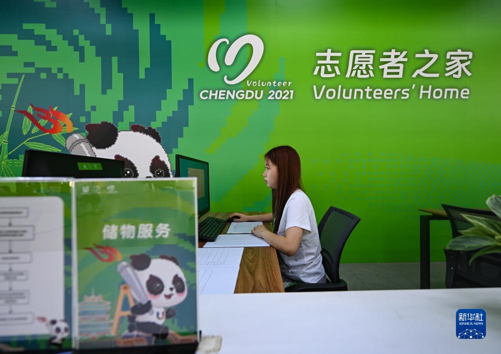 7月15日,在大运村志愿者之家,一位志愿者正在工作。