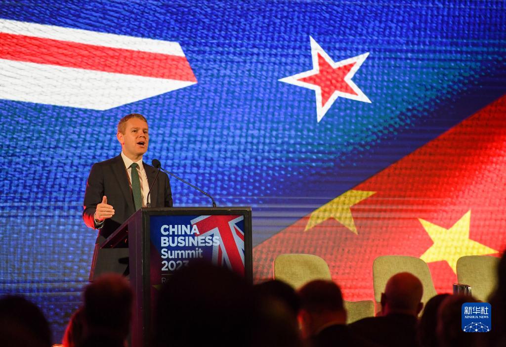 7月17日,新西兰总理希普金斯在新西兰最大城市奥克兰举行的第九届新西兰中国商业峰会上发表演讲。