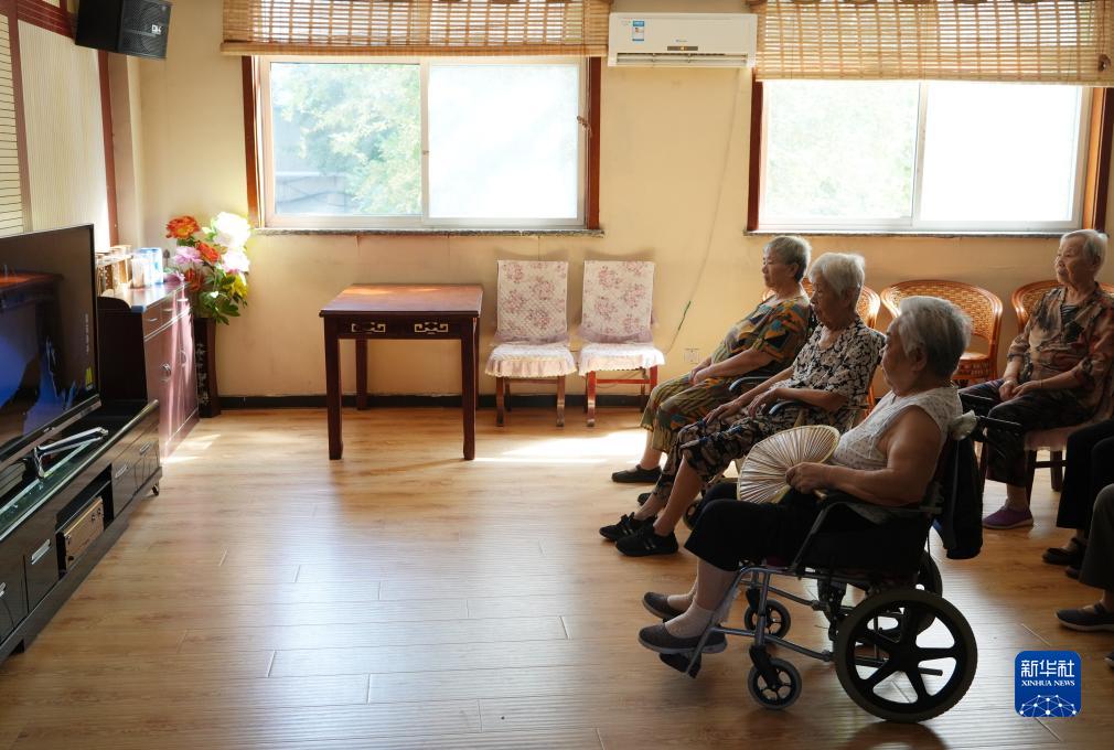 7月17日,在正定县塔元庄村劲松老年公寓,老人在活动室看电视。
