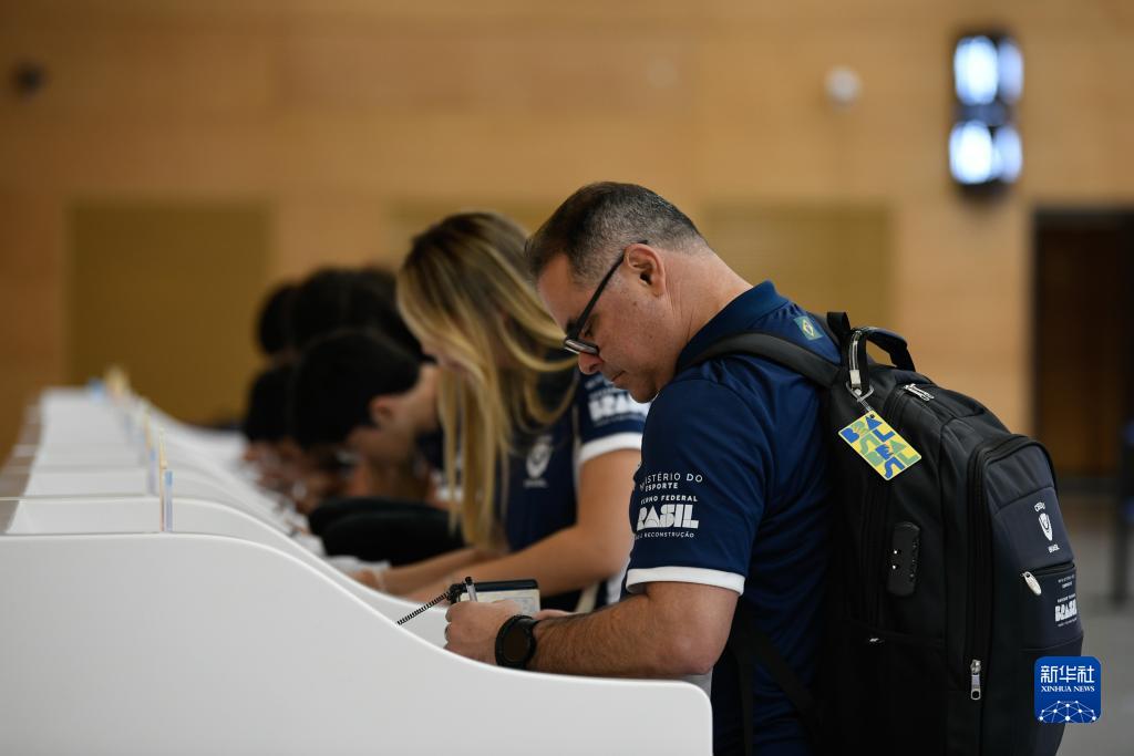 7月17日,在成都天府国际机场,首批抵蓉的巴西代表团成员填写入境卡。