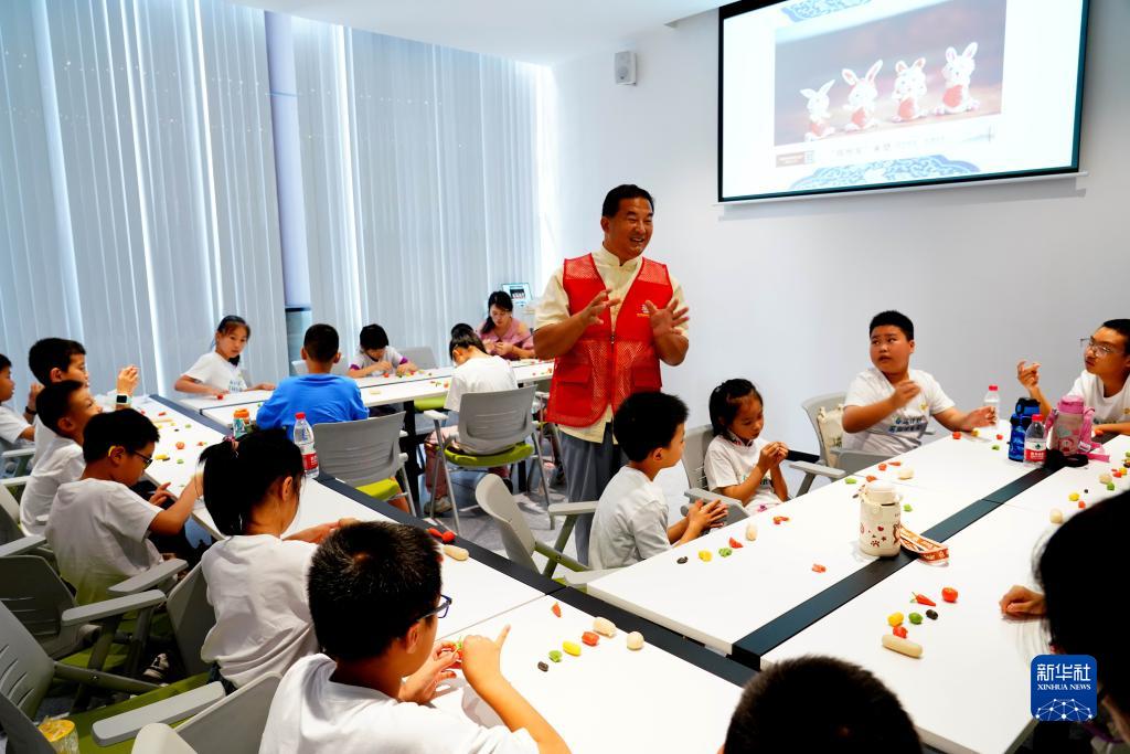 7月17日,浙江省瑞安市2023年“春泥计划”暑期快乐营在瑞安市新时代文明实践中心举行启动仪式,学生在“精彩非遗”传承营学习米塑技艺。