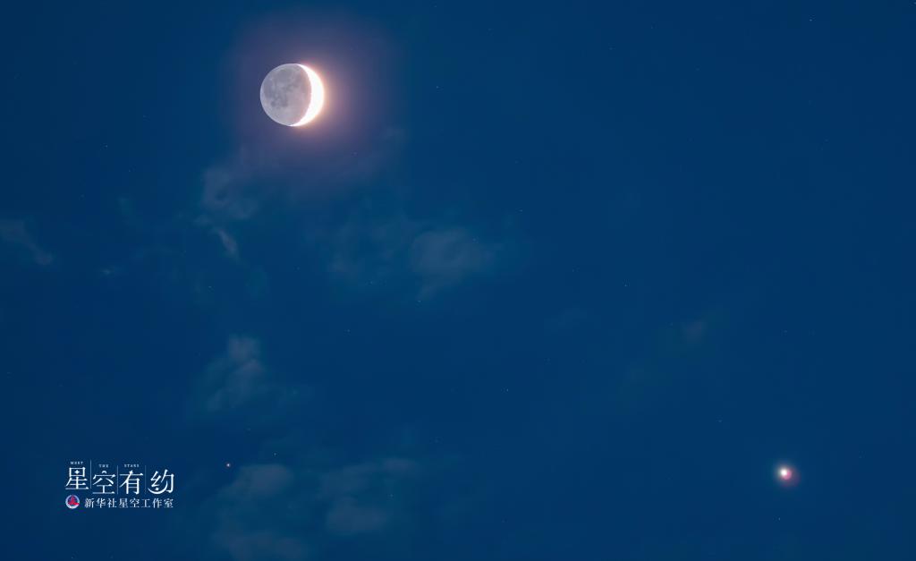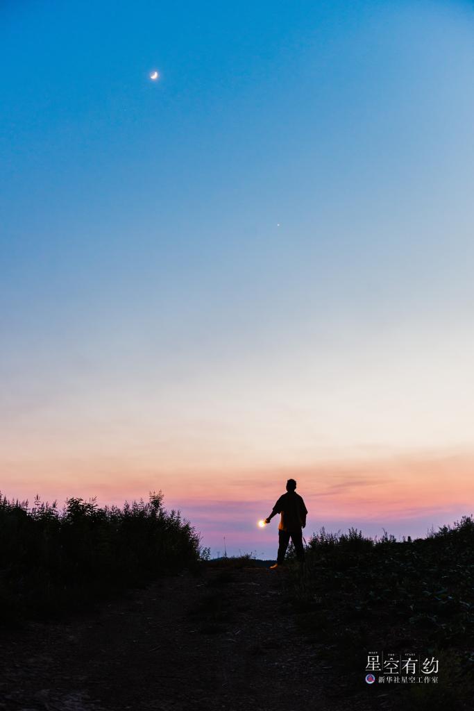 甘肃省天文摄影爱好者鲁罡2023年6月24日在陕西秦岭拍摄的金星伴月。(本人供图)