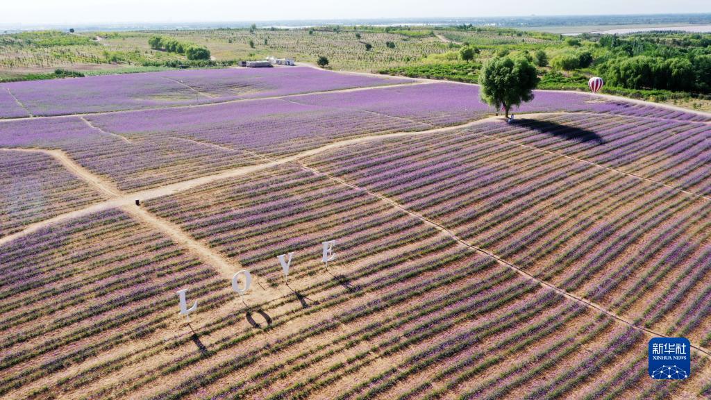 宁夏薰衣草庄园盛开的马鞭草(无人机照片,7月15日摄)。