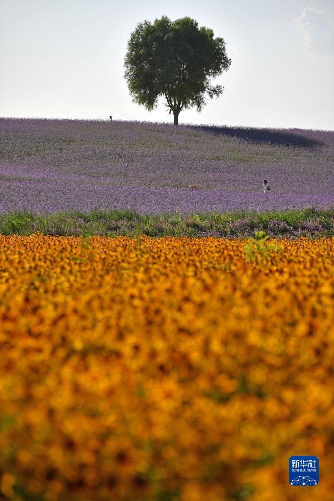 宁夏薰衣草庄园盛开的九叶菊(7月15日摄)。