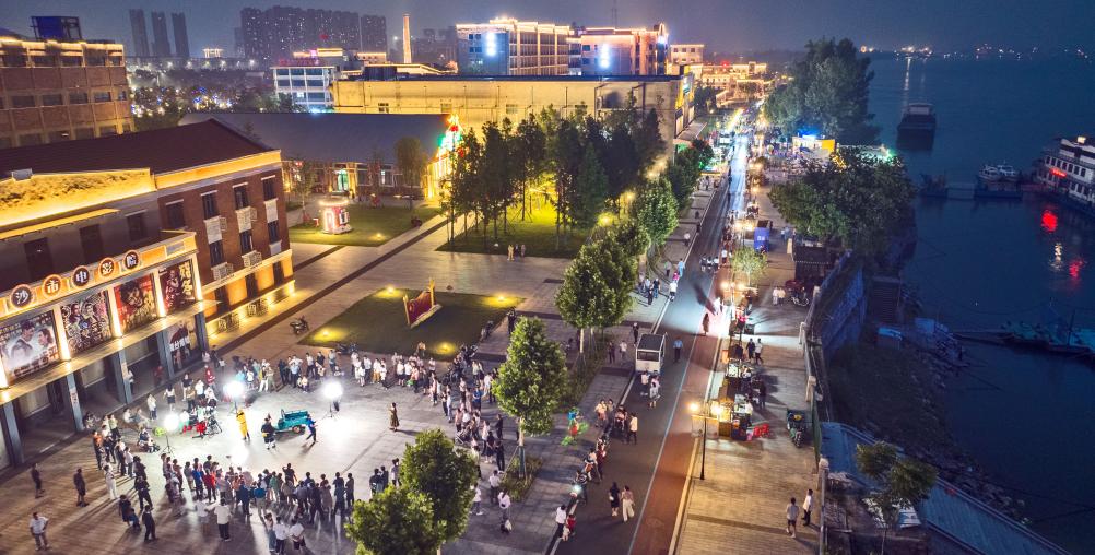 “从古商埠到近代的洋码头,再到如今热闹的文创园,漫步街头,仿佛穿越了千年的岁月。”长江边上的湖北省荆州沙市洋码头文创园,是市民姚安迪晚饭后散步的必到之处。