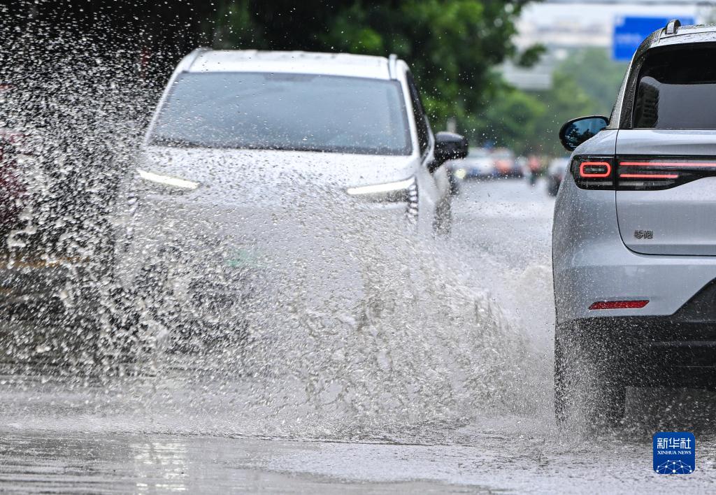 7月17日,车辆涉水行驶在海南省文昌市区街道。