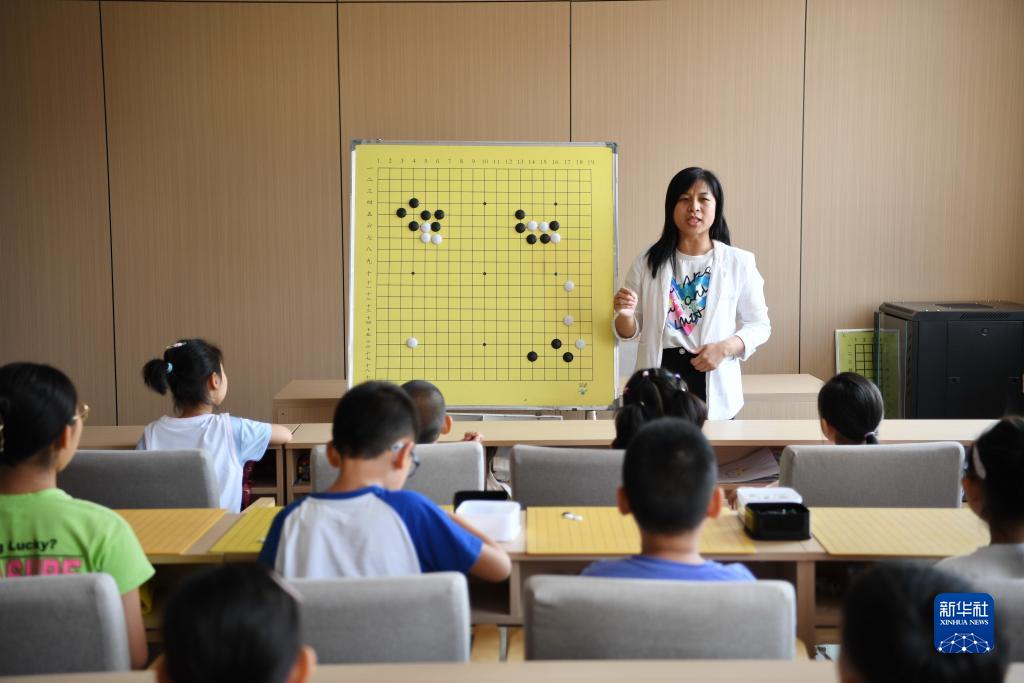 7月19日,老师在河北省唐山市丰南区新兴社区开办的“爱心暑托班”上为孩子们讲解围棋知识。