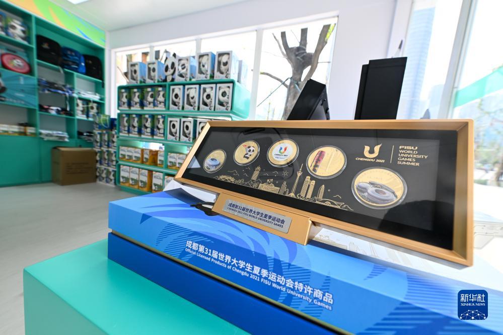 这是7月19日在成都市一家成都大运会特许商品零售店内拍摄的成都大运会徽章。