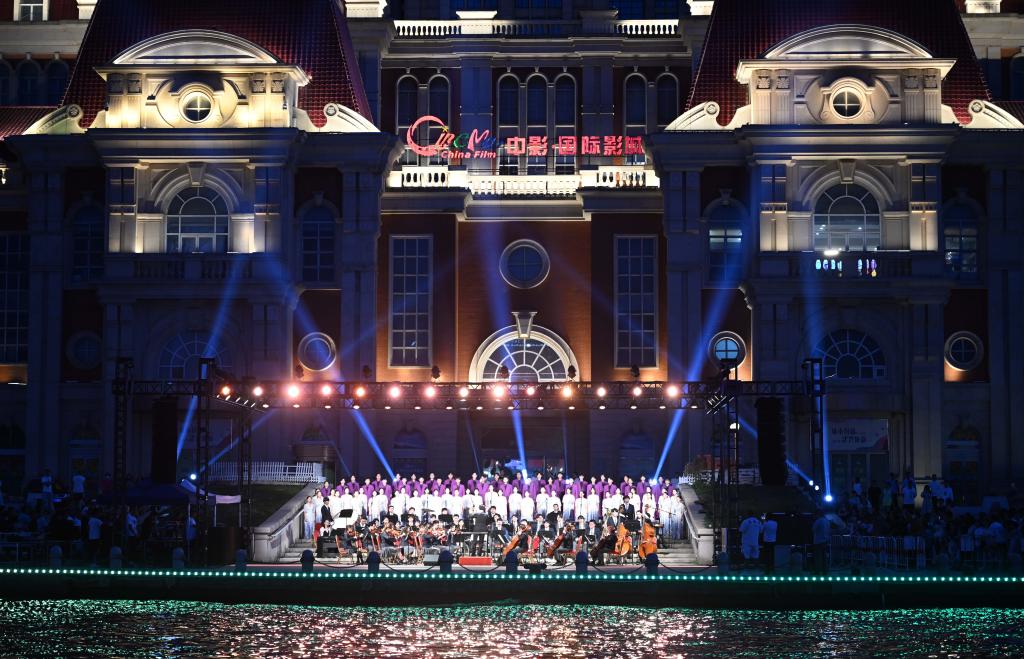 6月22日,一场音乐会在天津海河津湾广场附近举行。新华社记者 赵子硕 摄