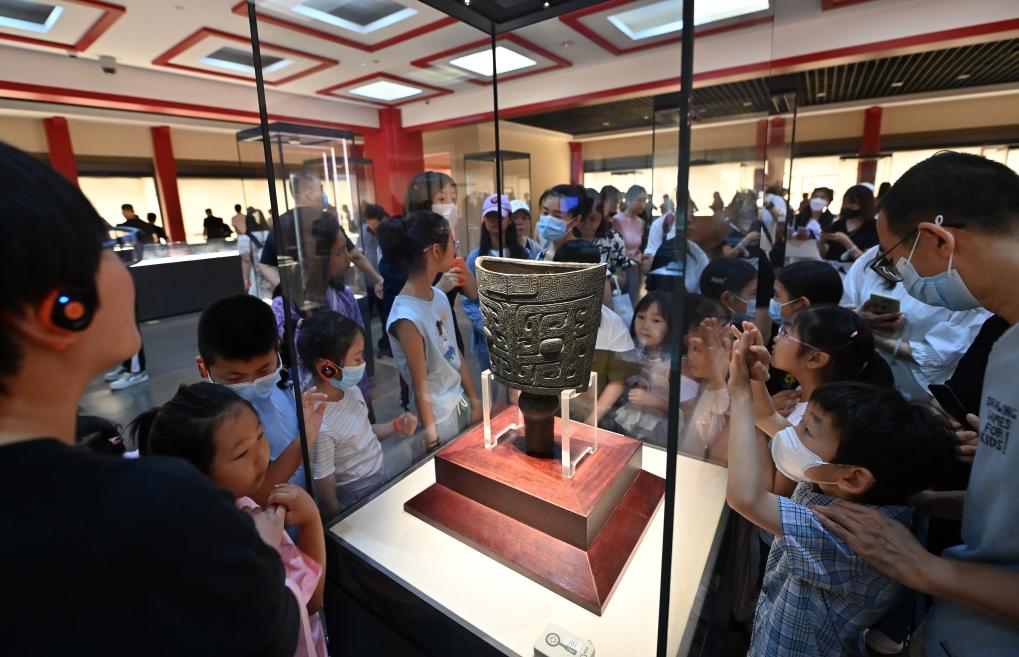 6月23日,小朋友们在天津博物馆观看展品。新华社记者 李然 摄