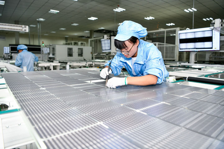 工人在位于贵州威宁经济开发区的贵州一道长通新能源有限公司生产太阳能光伏组件(7月19日摄)。新华社记者 杨文斌 摄