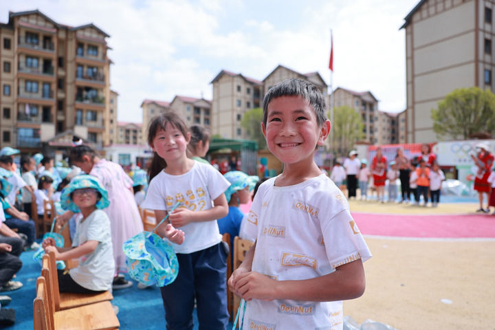 在贵州省单体规模最大的易地扶贫搬迁安置点毕节市七星关区柏杨林街道,七星关区第三幼儿园的孩子们在参加活动(7月13日摄)。新华社记者 刘续 摄