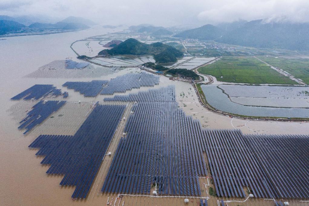 6月29日,位于浙江象山的滩涂渔光互补光伏项目正式并网运行发电。新华社记者徐昱 摄
