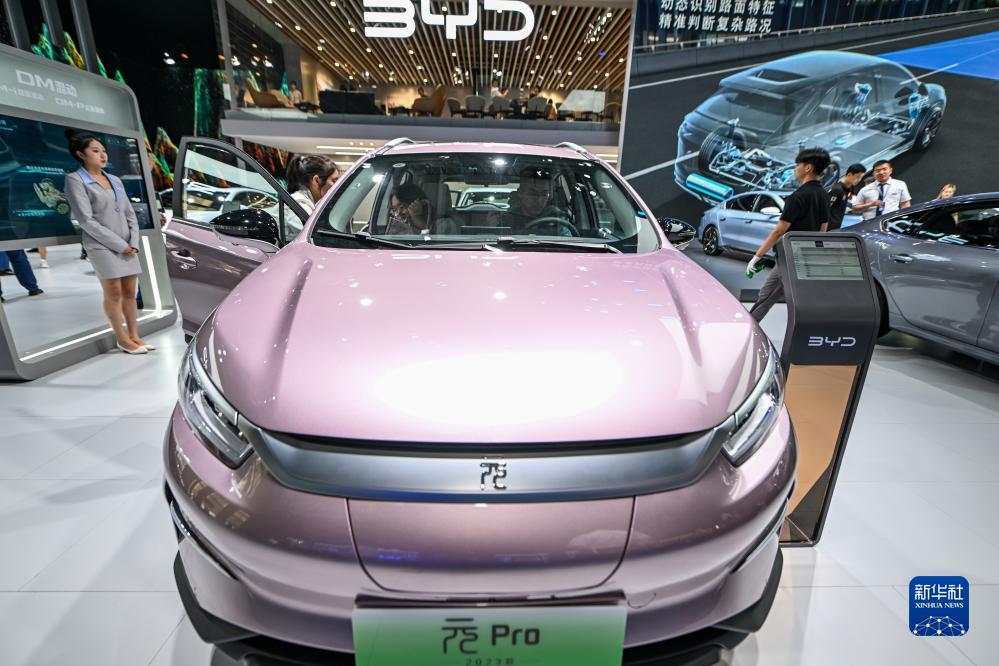 观众在长春汽博会的比亚迪展位上咨询和体验元Pro(7月20日摄)。