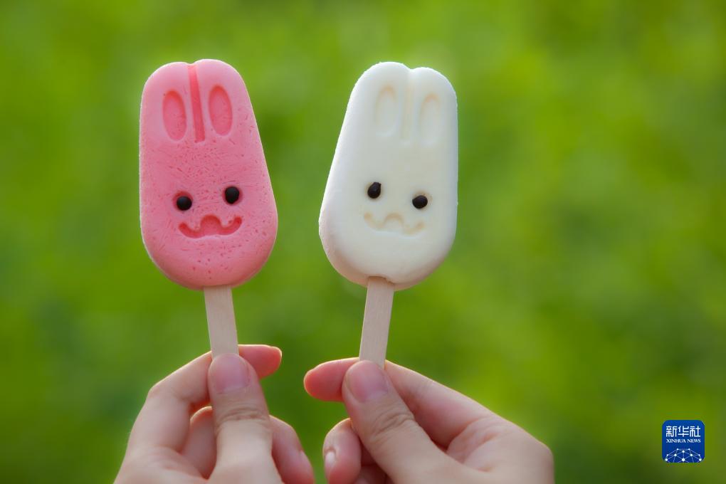 7月20日在山东省淄博市高青县田镇街道一处公园拍摄的卡通兔文创雪糕。
