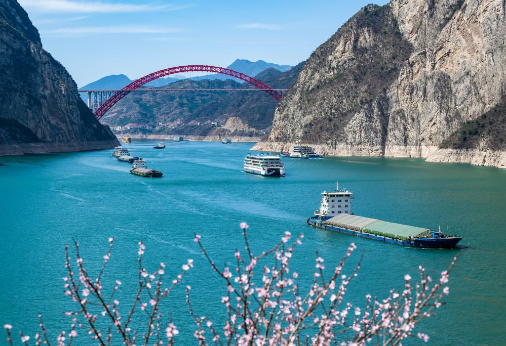 ↑3月14日,船舶行驶在西陵峡水域。