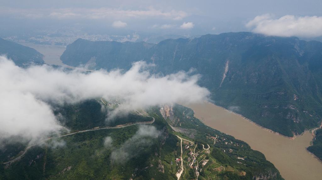 ↑这是6月11日在湖北省巴东县拍摄的巫峡口风光(无人机照片)。
