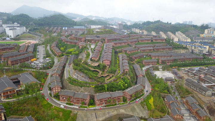 这是2019年6月6日拍摄的贵州省晴隆县阿妹戚托小镇(无人机照片)。新华社记者 杨文斌 摄