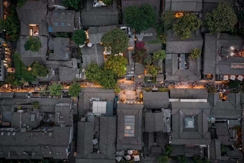 青羊区的宽窄巷子航拍。(青羊区委宣传部供图)