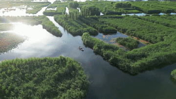 白洋淀被誉为“华北明珠”,是我国候鸟迁徙通道上重要的停歇地、繁殖地和越冬地。夏日阳光下,140多个淀泊星罗棋布,波光潋滟。