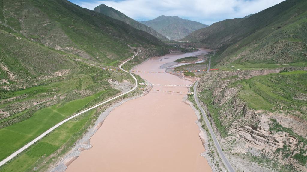这是7月22日拍摄的通天河直门达水文站(无人机照片)。新华社记者刘诗平 摄