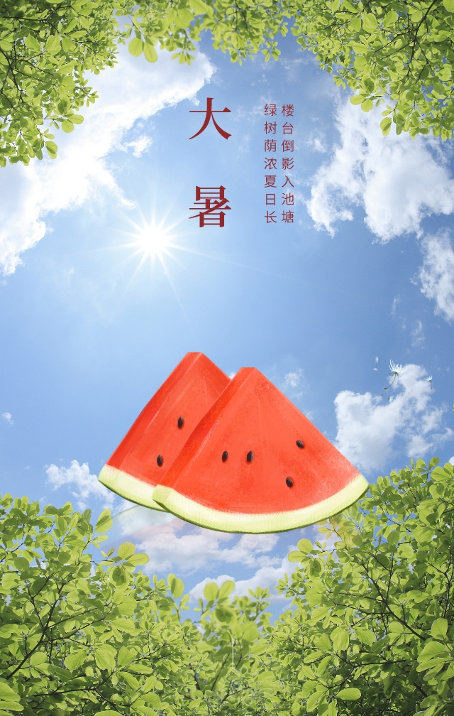 忙碌的身影,只为能够在不久后的秋天获得丰收。小暑接大暑,大暑连三秋。大暑一到,也就意味着离秋天越来越近了。唐代诗人元稹说“大暑三秋近,林钟九夏移”,这里的“林钟”是古乐十二律之一,随着律音响起,夏天就要过去了。