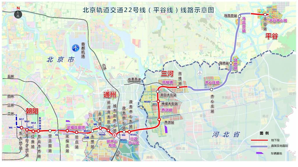 北京轨道交通22号线线路示意图。(北京市重大项目办供图)
