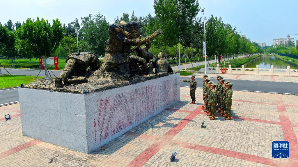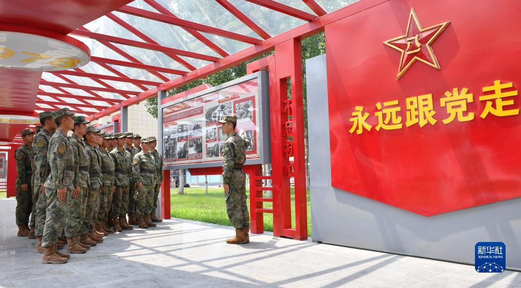 7月20日,中部战区陆军第81集团军某旅“松骨峰特功连”组织官兵在所在旅队军史长廊参观学习。新华社发(何鹏刚 摄)