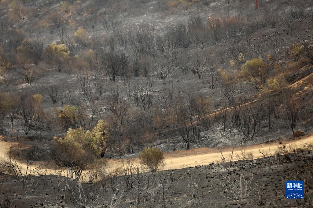 这是7月24日在阿尔及利亚布维拉省拍摄的野火烧过的山坡。新华社发